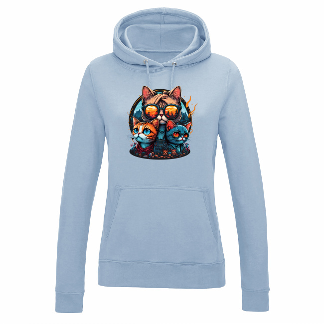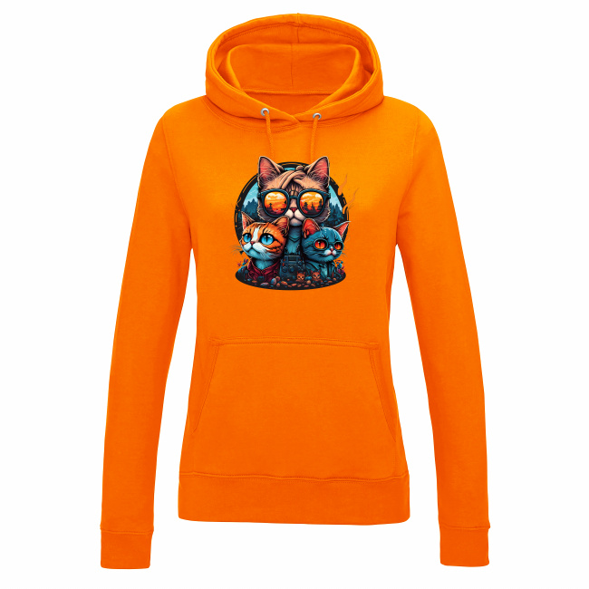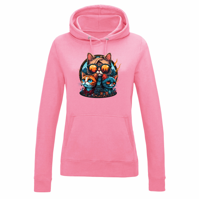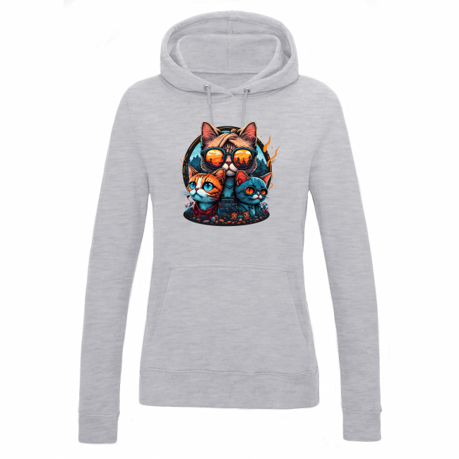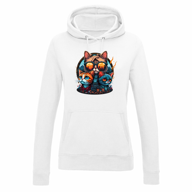 Stylowa bluza z kapturem wyposażona w praktyczną kieszeń typu kangurka, ozdobiona radosnymi wzorami przedstawiającymi koty. Miękka i przyjemna w dotyku zapewnia całodzienny komfort noszenia.